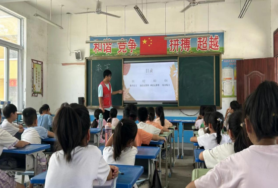 师云泽,男,外国语学院商务英语专业231班学生,院学生会部门负责人。在支教过程中,他为当地的孩子们带来了种类多样的课程,包括历史、音乐、体育等。他的历史课生动有趣,将抗美援朝的故事以鲜活的方式呈现给孩子们,激发了他们对过去的好奇和探索欲。在音乐课堂上,他带着孩子们唱响美妙的旋律,让音符在简陋的教室里跳跃,为孩子们的生活增添了欢乐的色彩。体育课中,他亲身示范,教导孩子们各种运动技巧,培养他们的团队合作精神和竞争意识。在与孩子们的互动中,他深深地感受到了孩子们的纯真和渴望。孩子们对知识的热爱,对未来的憧憬,都让他深受触动。同时,他也尽己所能,用他所学的知识,为孩子们打开了一扇通往更广阔世界的窗户。