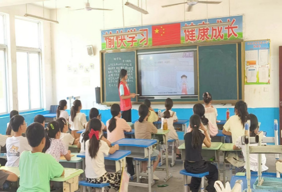 袁嘉,外国语学院商务英语专业224班学生,院学生会主席团成员。暑假期间,她跟随学院支教团队来到河南省周口市沈丘县刘庄店镇晏庙小学,开展乡村支教实践活动。在活动中,她认真备课,态度端正,积极与校方沟通,做好工作对接。同时,她组织志愿者为小朋友们带去丰富多彩的课程内容,并关注每一位小朋友的上课状态和学习情况。她讲授的拒绝校园霸凌安全教育课程,让小朋友们进一步了解到校园霸凌的危害。孩子们在她的讲解下,学会了如何正确预防校园霸凌。而在课程之外,她还积极向当地中学生宣传国家资助政策,帮助他们深入了解国家对于教育的支持和保障。今后,她还会继续走在志愿服务的道路上,为更多需要帮助的人带去温暖与希望。