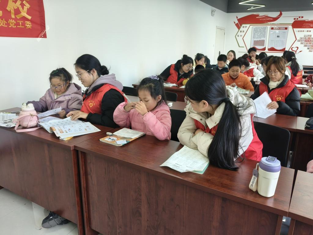 活动当天,外国语学院的志愿者们早早来到社区活动中心,为即将开始的辅导与教学活动做足准备。在作业辅导环节,志愿者们根据不同学科和学生的学习进度,耐心地为孩子们答疑解惑。面对语文作业中的阅读理解与写作难题,志愿者们引导孩子们深入剖析文章内涵,启发他们的思维,帮助他们组织语言,逐步提升文学素养与表达能力;在数学作业辅导中,复杂的公式与解题思路在志愿者们生动形象的讲解下变得清晰易懂,孩子们积极互动,认真学习解题技巧,攻克一道道数学难关;而在英语学习辅导方面,志愿者们充分发挥专业优势,从单词发音、语法知识到口语表达,全方位地进行指导,通过有趣的英语小游戏和情景对话练习,激发孩子们对英语学习的兴趣与热情。