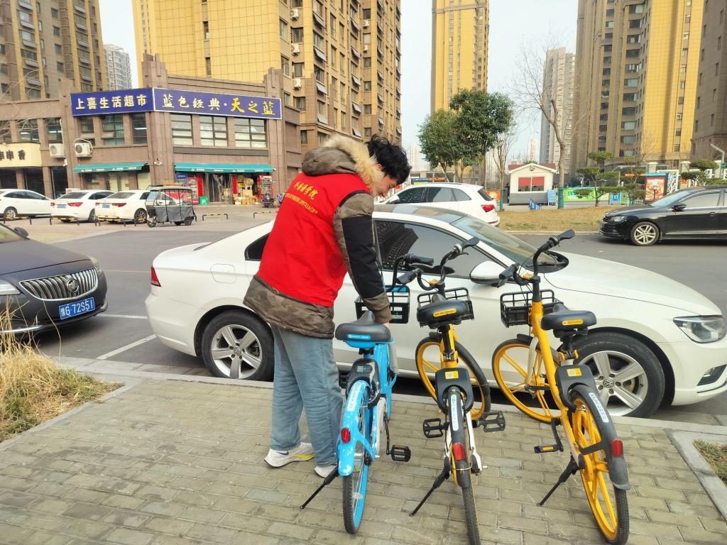 活动当日,志愿者们早早来到华恩社区,迅速投入到各项服务工作中。在社区街道,志愿者们手持垃圾袋、扫帚等工具,认真清理路面上的烟头、纸屑、落叶以及各类杂物。大家分工明确,有的负责清扫垃圾,有的负责将垃圾装入垃圾袋,不放过任何一个卫生死角。随后,志愿者们又将目光聚焦在乱停乱放的共享单车。他们将一辆辆共享单车扶起,重新摆放整齐,并对车身进行擦拭清洁。不少志愿者还主动向居民宣传文明使用共享单车的理念,引导居民规范停车,共同维护社区交通秩序。在大家齐心协力下,原本杂乱无章的共享单车摆放得井然有序,成为社区一道亮丽的风景线。