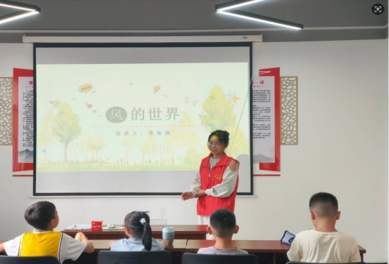 科学知识课堂同样亮点十足。团队成员深入讲解风的形成原理、种类及影响,重点剖析海陆风、山谷风等自然现象。为了让孩子们更直观地理解,团队精心设计动手实验,通过模拟实验场景,让孩子们亲眼见证风的形成过程。实验结束后,随堂练习进一步加深了孩子们对知识的掌握,孩子们积极思考、踊跃作答,展现出对科学知识的浓厚兴趣。