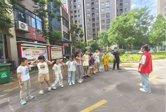 7月1日,外国语学院团委“长夏传知铺锦路 社区陪伴助成长”大学生暑期“三下乡”社会实践团队在华恩社区开展第二天实践活动。当天活动延续首日的丰富形式,以趣味互动与红色教育相结合,让社区儿童在欢乐中学习知识、厚植家国情怀。