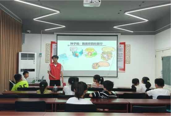 传统文化环节聚焦干花团扇制作,志愿者从古代团扇的用途与寓意讲起,指导孩子们挑选干花、搭配色彩,一把把融合创意与美感的团扇在指尖成型。科学知识课堂以“风的奥秘”为主题,通过讲解与模拟实验展现海陆风、山谷风的形成原理,随堂问答中孩子们踊跃思考,展现对自然科学的浓厚兴趣。