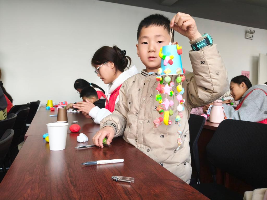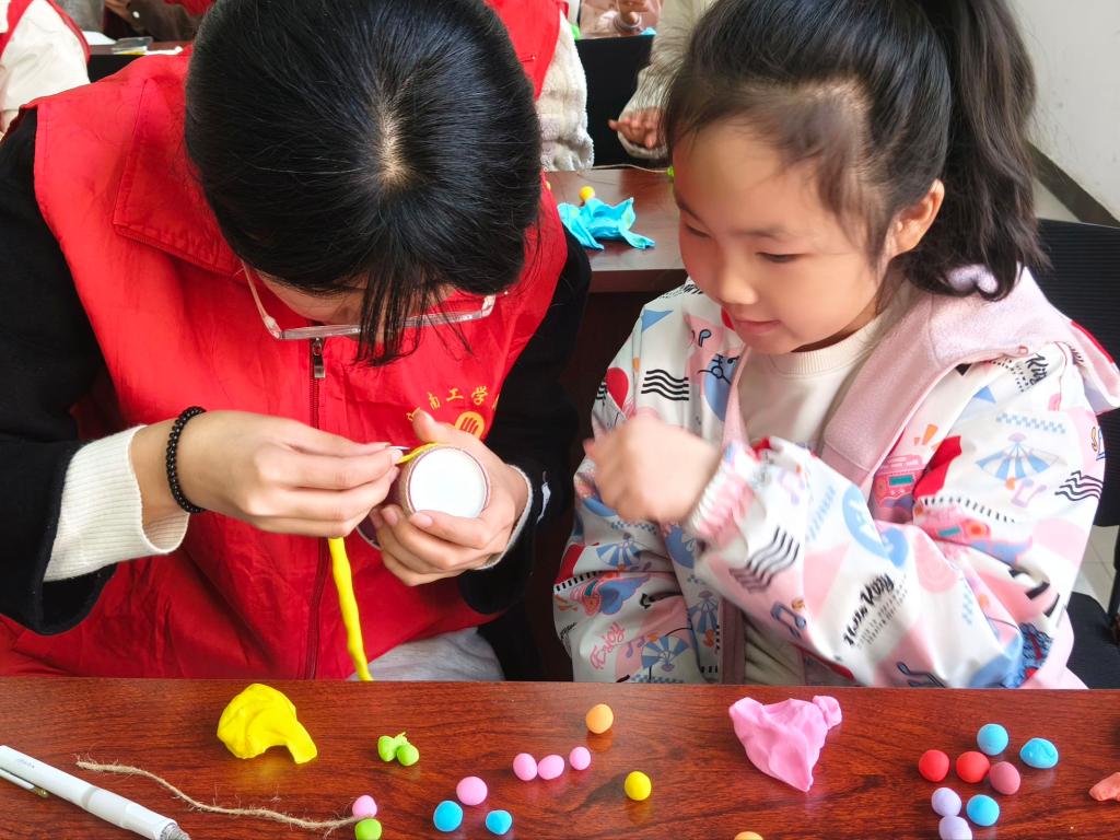 本次活动紧扣春分节气特色与青少年成长需求精心设计,志愿者各司其职、默契协作,为社区青少年带来别样的春日体验。志愿者针对孩子们的学习需求开展精准课业辅导,用清晰的讲解和暖心的鼓励,为孩子们扫清学习障碍,筑牢知识基础。随后,志愿者以春分节气为核心,开展传统文化趣味课堂,带领孩子们动手制作春日风铃:以纸杯为主体框架,用彩泥捏塑出花朵、嫩芽等春日意象装饰杯身,再将棉线穿起彩珠、彩泥小坠子,逐一系在杯底形成错落的风铃串。一个个精致的风铃不仅让孩子们在动手实践中感受创作的乐趣,还承载着孩子们的春日期许,成为独属于这个春天的美好纪念。活动中,志愿者们热情满满、认真负责,温馨的画面成为社区里一道动人的春日风景线。