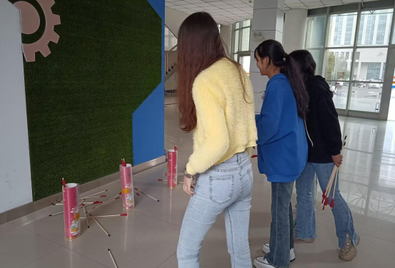 本次活动设有顶纸杯、近水楼台先得月、传递团圆、历史事件猜猜猜等四个项目。同学们共分为十个小组,展开了一场有关勇气、趣味、胆识的较量。活动中,前五组的同学依次进行“近水楼台先得月”投壶活动,后五组同学开展历史事件猜猜猜活动。大家协同合作、展示风采、相互鼓励,欢笑声此起彼伏。这两项活动后,同学们依次进行了“传递团圆”与顶纸杯活动,活动过程精彩纷呈,现场气氛十分热烈,各个小组都展现出集体意识、拼搏意识与竞争意识。