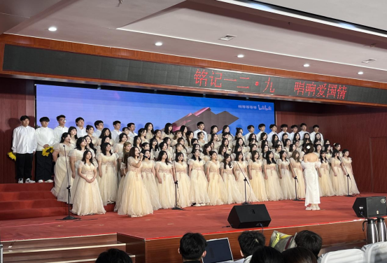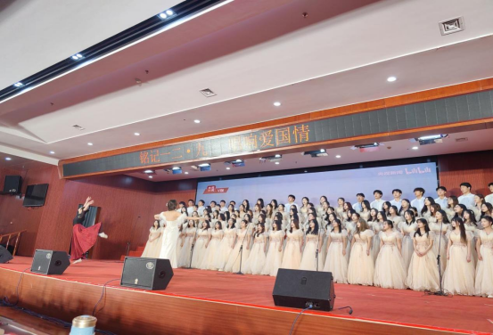 活动当天,歌会现场灯光璀璨,气氛热烈。外国语学院的学生们身着整齐而富有特色的服装闪亮登场。当熟悉的旋律响起,他们以饱满的热情和深情的演唱,将《开拓之歌》《我和我的祖国》演绎得淋漓尽致。歌声时而激昂奋进,传达出对学校蓬勃发展的自豪与信心;时而悠扬婉转,倾诉着对校园时光的眷恋与珍惜。无论是激昂的高音部分,还是细腻的抒情段落,都展现出了外国语学院师生扎实的演唱功底和良好的艺术素养。