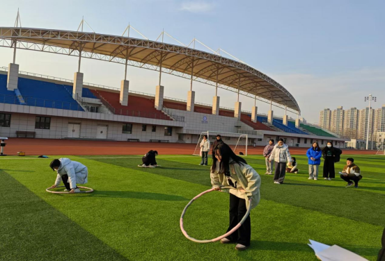 “拯救队友”项目无疑成为了本次活动缓解压力的高潮环节。团队成员们在制定和执行“救援计划”的过程中,相互沟通、协作配合,形成了一个紧密团结的整体。这种团队互动不仅增强了集体凝聚力,更让学生们在团队的支持与鼓励中感受到温暖与力量。面对“被困”的队友,大家齐心协力,共同克服困难,每一次成功的“拯救”都伴随着欢呼声与成就感。在这个过程中,学生们内心的焦虑与压力被团队的正能量所驱散,取而代之的是对团队协作的信心与对自身能力的重新认知。最后进行的“穿越呼啦圈”项目则在轻松愉快的氛围中进一步巩固了减压效果。队员们手拉手传递呼啦圈的过程,像是一场心灵的传递与情感的交流。大家在欢声笑语中完成比赛,彼此之间的距离更近了,心灵也更加放松。这种轻松和谐的氛围如同阳光穿透阴霾,照亮了学生们因考试压力而略显沉闷的内心世界。